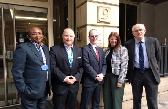 Photograph left to right: Julius Ajayi (ELFT), Frank Riedel (ELFT), David Stevens (Director of Estates), Caroline Chautemps and Ian Nisbet, Managing Director, OCS Healthcare and Education