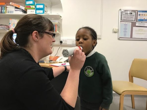We would ask the families to bring all personalised asthma action plans, inhalers, spacers and peak flows with them to help with this.
