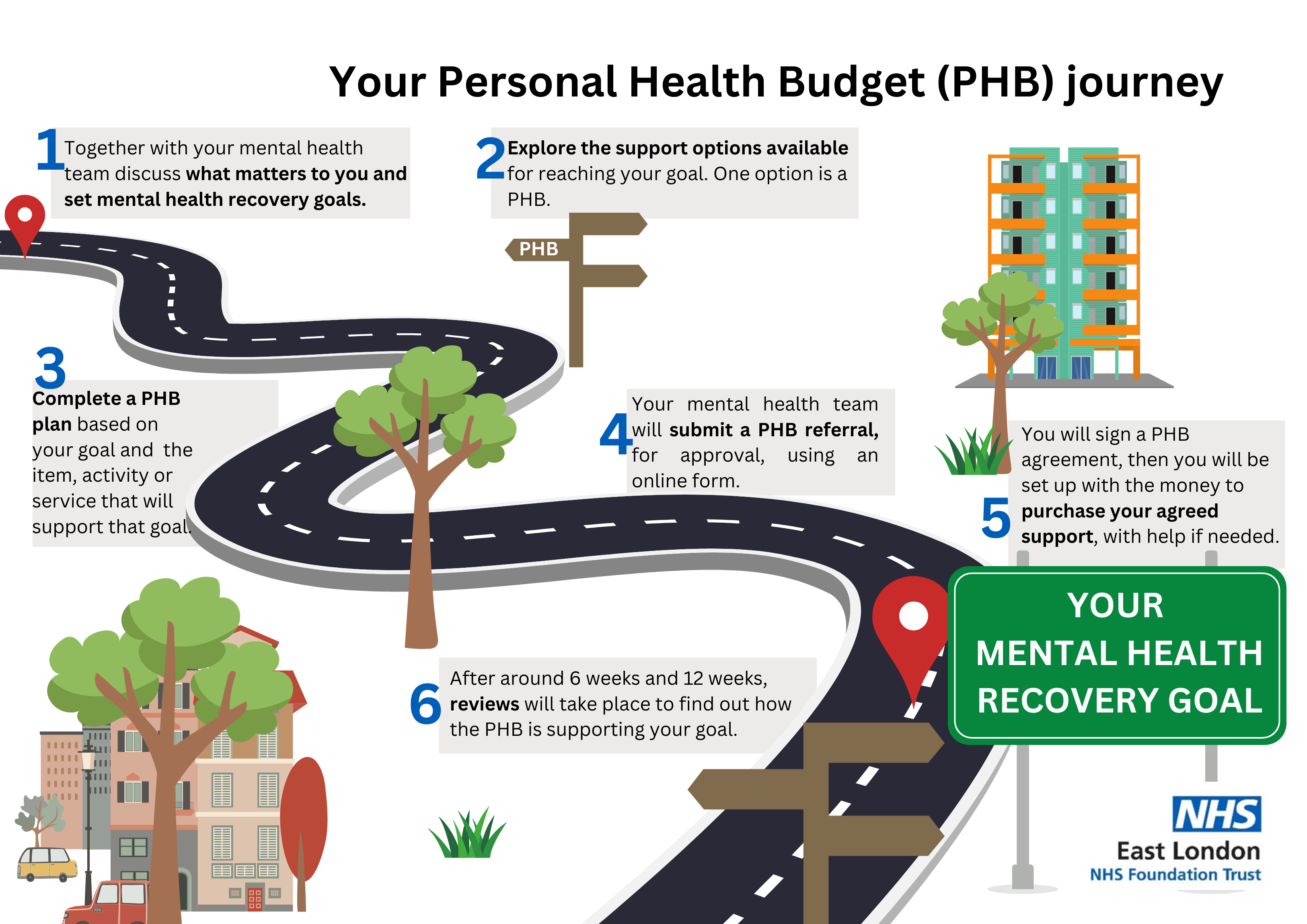 PHBs help you to work towards your mental health recovery goals in a way that is unique to you. They allow people to access support outside of what is already available through statutory or voluntary sector support, giving you more choice and flexibility around how you work towards your own version of mental health recovery.